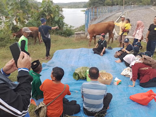 Tradisi ngalungi sapi, jelasnya, memberikan kalung kepada sapi berupa ketupat dan lepet. Hal itu merupakan wujud syukur kepada Tuhan YME, karena sapi mereka diberi kesehatan dan membantu hasil pertanian